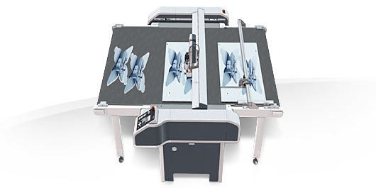 Un système de chargement semi-automatisé permet de réduire au maximum le temps d’inactivité de la machine. Le système de convoyage et la gamme de dérouleurs permettent une découpe sans interruption des supports en rouleau et des travaux dont la longueur dépasse la table de découpe. Pour les textiles, un guide innovant contribue à réduire les plis.